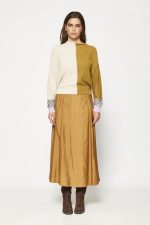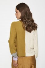 Punhos com cores diferentes (lilás e cinzento), adicionam um terceiro( amarelo mostarda) e quarto tom (crú).