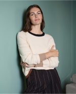 Camisola de malha macia com gola perkins e pormenores em contraste.