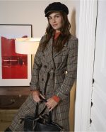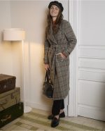Este é um casaco intemporal, com um xadrez em tons camel e um tecido maravilhoso.