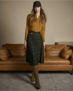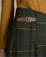 Saia midi, cruzada, xadrez verde, camel e azul.