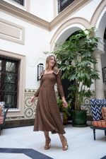 O vestido midi Cobre para convidada de casamento é a combinação perfeita de sofisticação e frescura.
