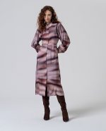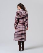 Vestido midi tipo camiseiro em tons bordeaux.