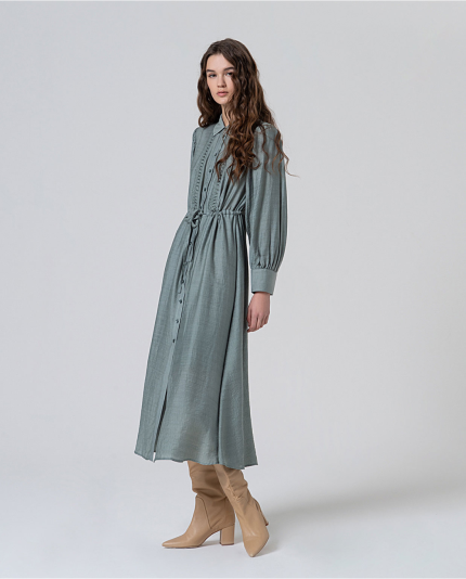 Com 2 bolsos e botões na parte da frente, este vestido tanto serve para um look mais casual ou para um look mais formal.